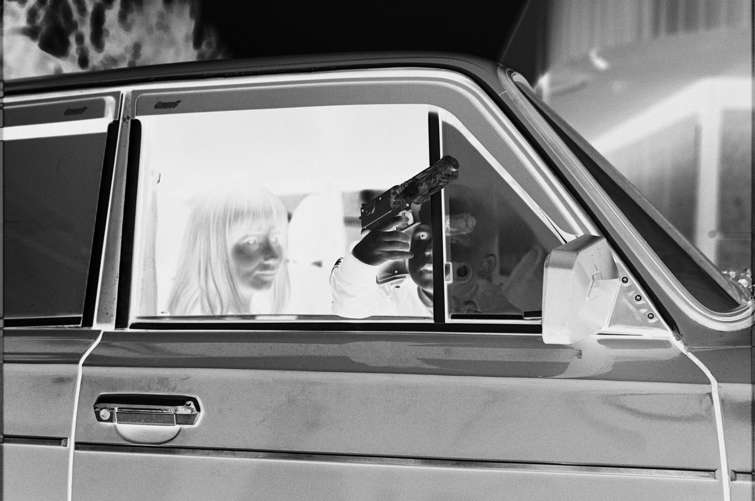 Mother’s Day is an enlarged photographic negative on archival photo paper, which shows a mother and son in the under-fire city of Kramatorsk, a tender moment distorted by the gun in the boy’s hand. As documentary, the image appears as an immersive record of an event, but by inverting the photograph Marker interferes with our perception via the photochemical process that produced it. Part of an ongoing series by Marker using alternative analog processes.