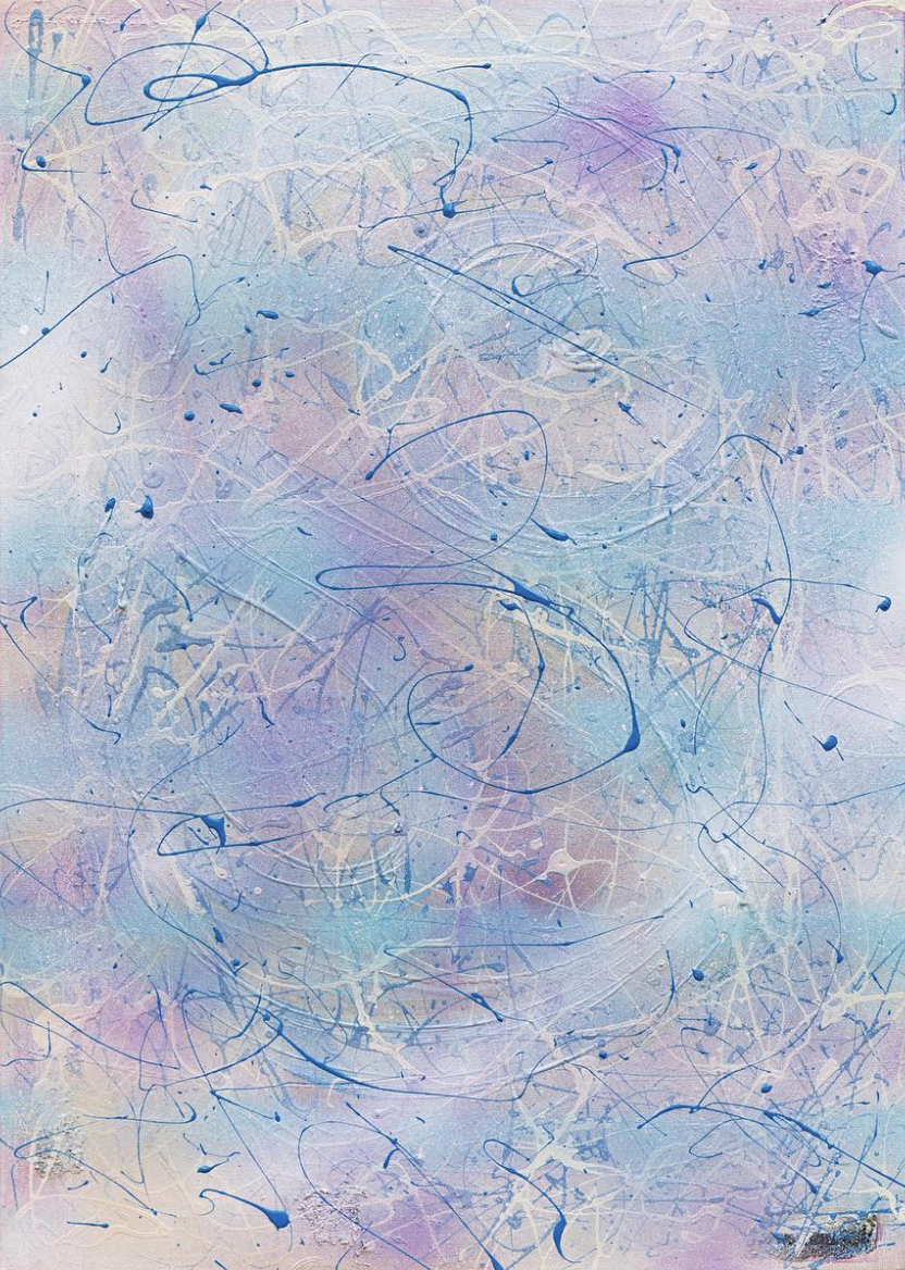 “My art tries to invite the view to look beyond the horizon and reflect. All of my paintings have many layers…I let the viewer recognize my symbolic idea of the complexity of our multilayered life. Layer by layer the painting changes its look, the colors too, but the previous layers can still be seen through. It’s my symbolic way of expressing how our life experiences are forming our life journey.”